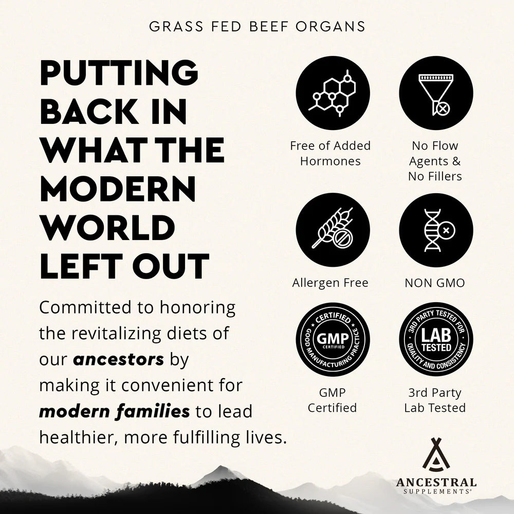 Ancestral Supplements was founded on a radical return to this wisdom, guided by the timeless principle of "like supports like." Our ancestors understood that consuming the sacred, nutrient-dense tissues of healthy animals provided unparalleled support for our own corresponding organs. It is nature's most intelligent system of repair and rejuvenation.